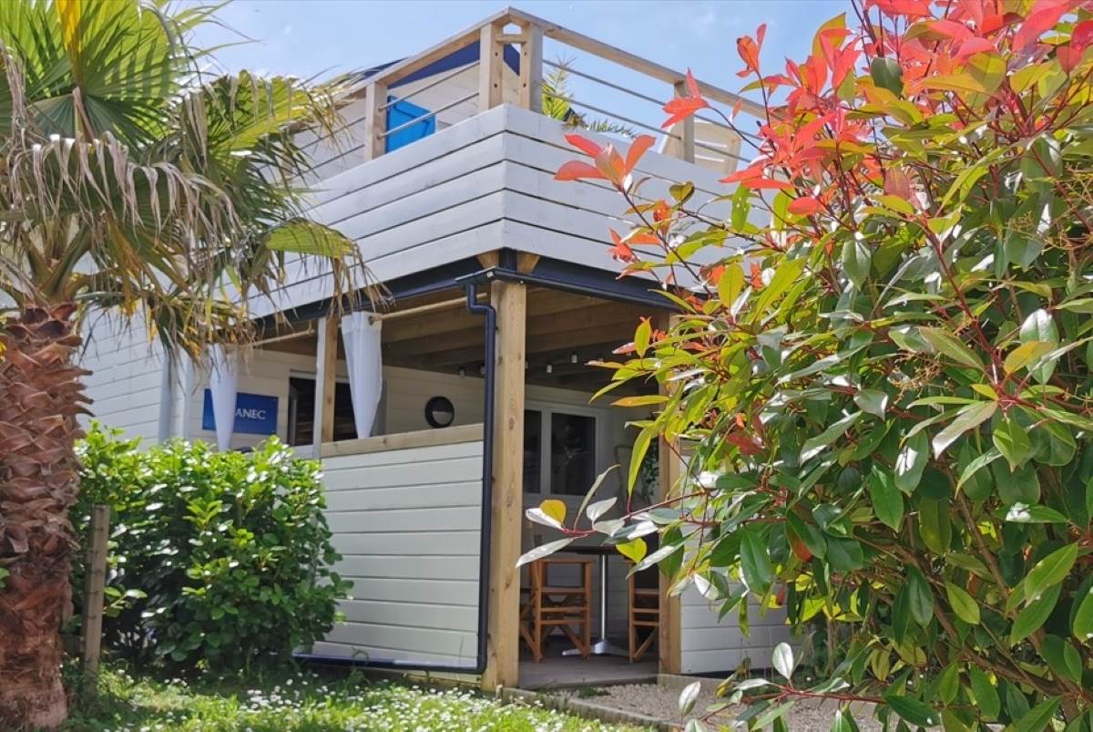 Chaque chalet tout en bois est conçu pour 4 ou 5 personnes et dispose d'un espace lumineux, à la décoration soignée et entièrement équipé. Découvrez également le Lodge **** pour 2 personnes avec Suite et terrasse vue mer, Jacuzzi privé.